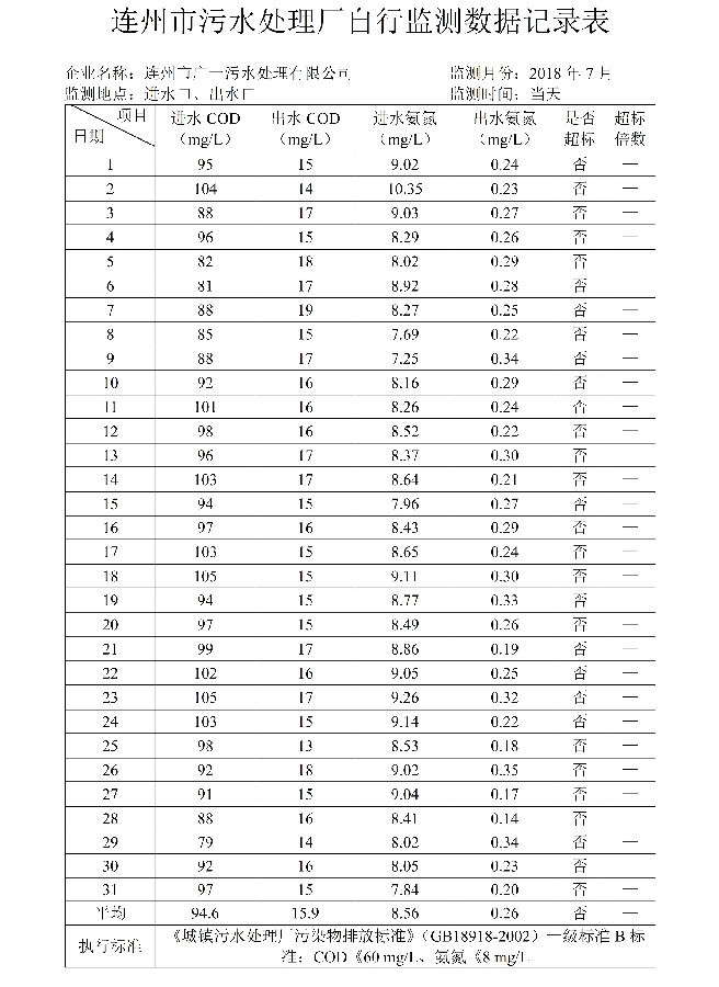 2018年7月自行監(jiān)測(cè)數(shù)據(jù)--連州市廣一污水處理有限公司
