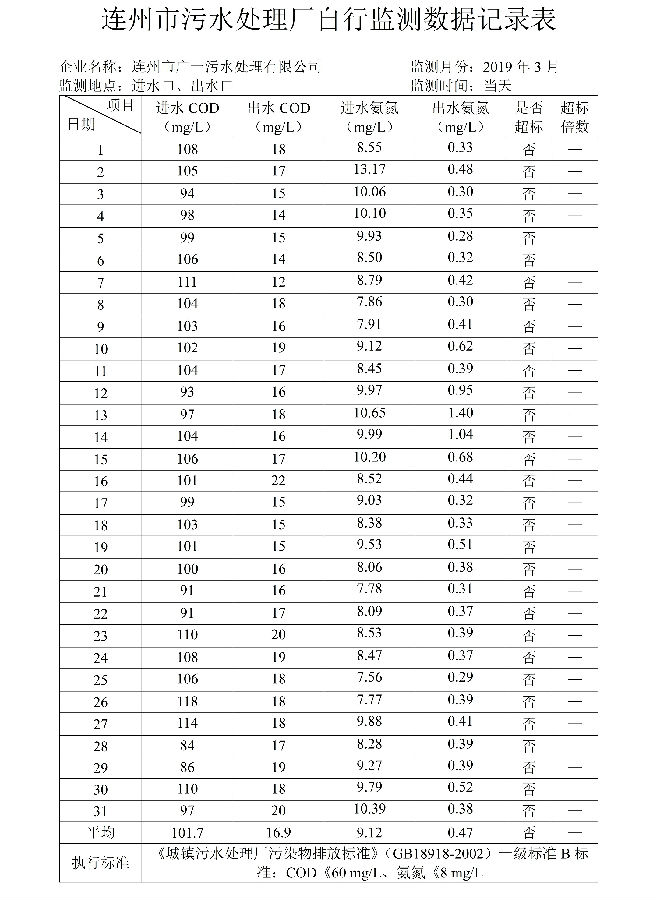 2019年3月自行監(jiān)測數(shù)據(jù)--連州市廣一污水處理有限公司
